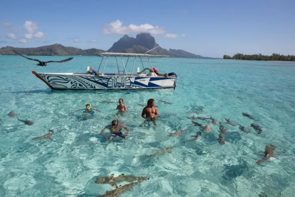 Deuxièmement, ne manquez pas l’excursion à la journée pour nager avec les requins à pointe noire et les raies.